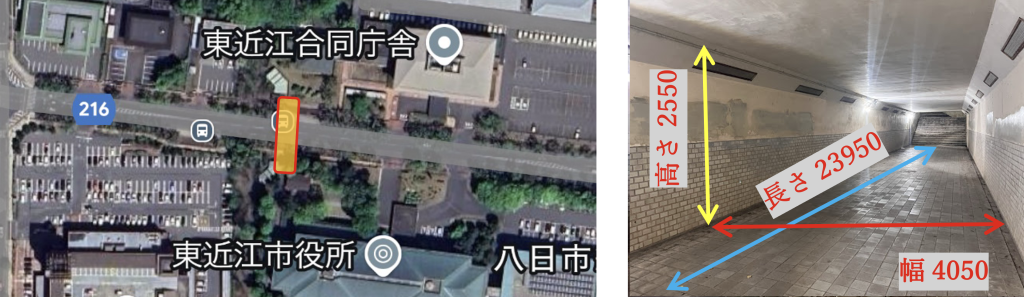 地下通路は大きさは幅4m×高さ2.5m×長さ24mで、