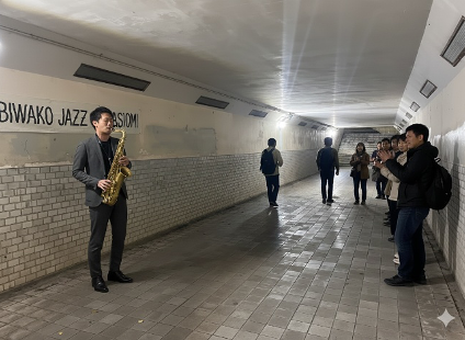 びわこジャズ東近江において、東近江市役所前グリーンロード地下通路を歩行者天国とし、地下通路の「残響(エコー)」が自然なリバーブ効果を生み出し、生音のパフォーマンスを非常に豊かに響かせてくれる会場、